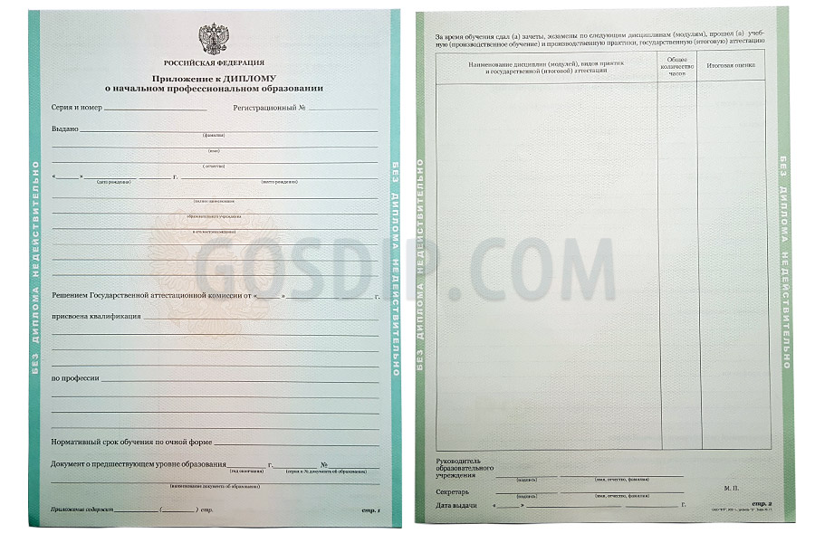 | Оформление: | Как ПТУ, «мокрая» печать, настоящие подписи |