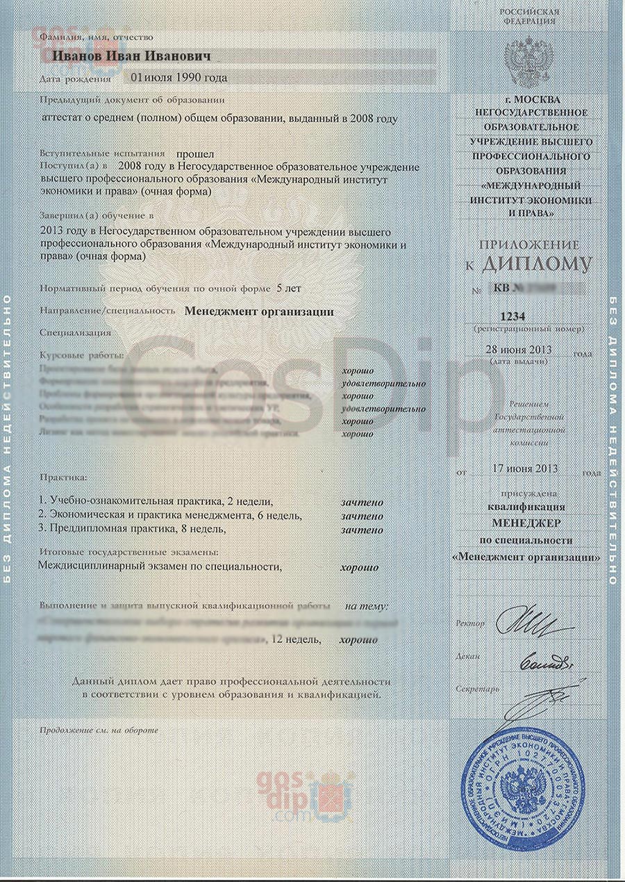 | Оформление: | Как в ВУЗе, «мокрая» печать, настоящие подписи | ВУЗ: | Любой университет, институт, академия России |